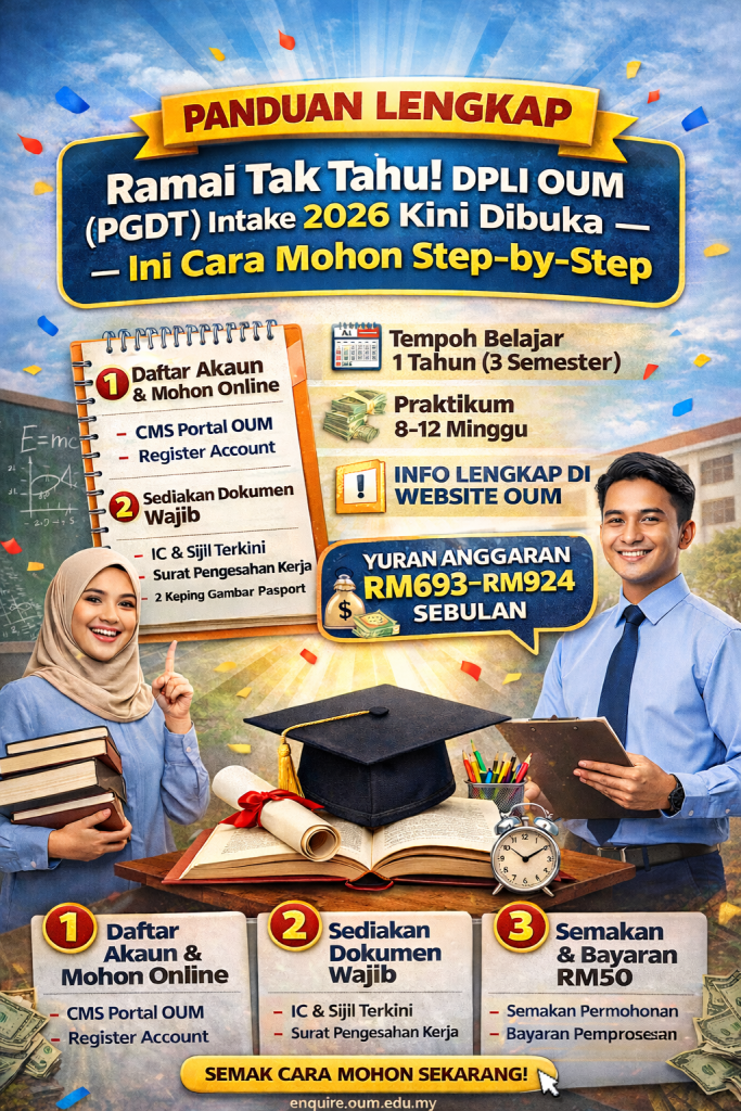 Berita baik untuk yang memang target nak jadi guru / pendidik: pengambilan Januari 2026 untuk program OUM kini dibuka.